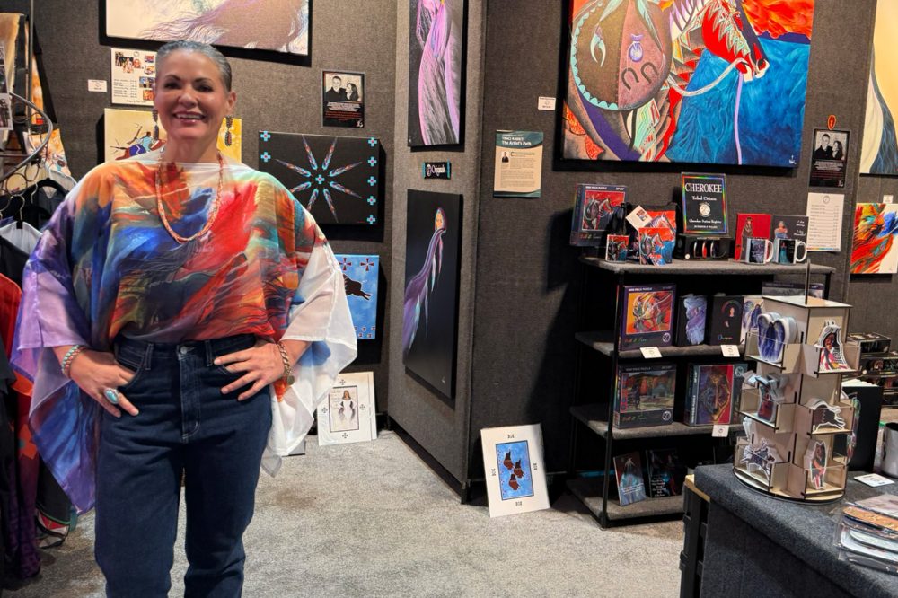 Traci’s work captures a spirit in the Native American woman that does indeed embody the best in female strength. From the proud lift of her chin to the strands of hair caught by the wind, she appears to weather all storms. Her paintings represent the way it feels to be female; to fly in the face of all that comes, with fierce dignity, energy and strength, but they also capture women’s ability to be gentle, yielding, kind and passionate.